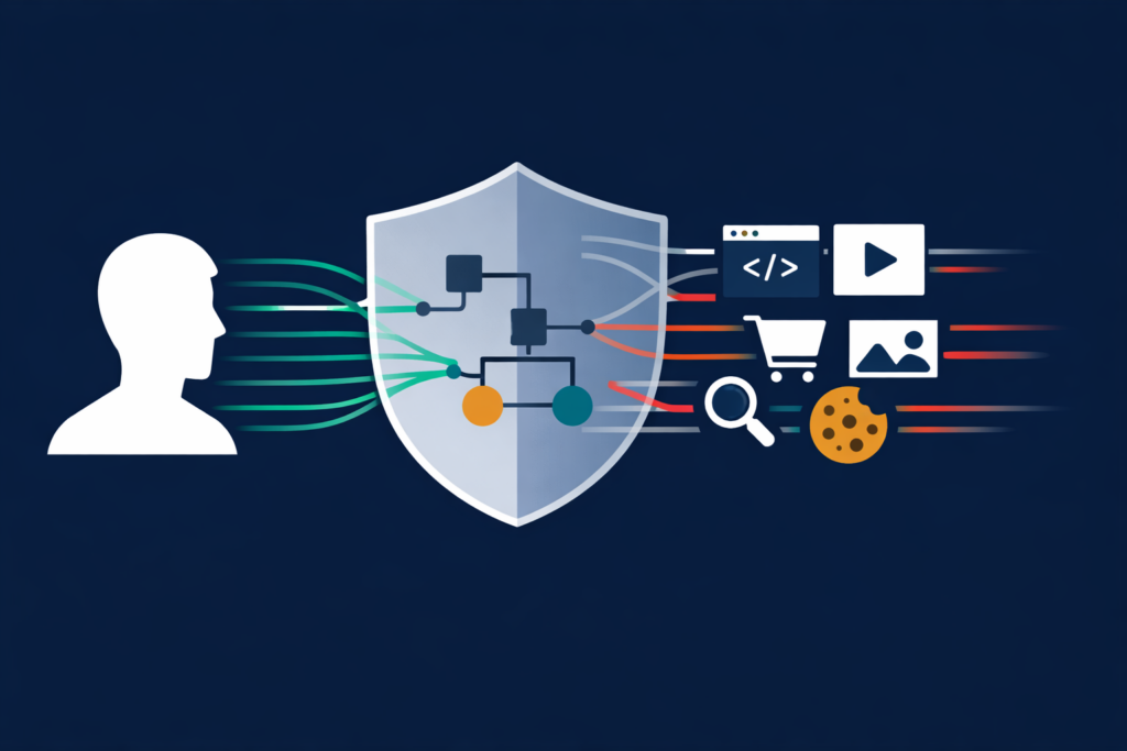 A user might say: “Allow functional cookies everywhere. Allow analytics on shopping sites, first-party only. Deny all advertising cookies. Block any processing involving Meta.”