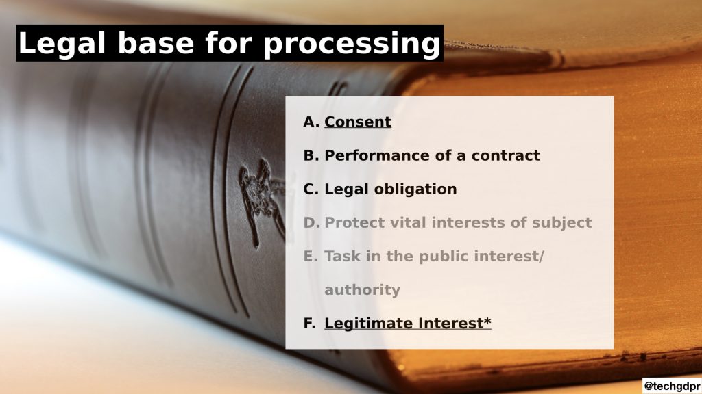 - Consent as a legal base is challenging as it’s very difficult to collect valid, freely given consent from data subjects. Where consent may be collected, e.g. through a captive portal, it is quite unlikely to have a high conversion rate.