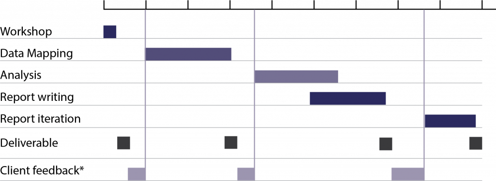 Requirements and expectations are different for each client, so we have the flexibility to adapt our processes, deliverables and time-frame. Depending on how much work we have ongoing, the availability of information or by adapting the scope, we can sometimes help much faster. Simply ask us for the possibilities!